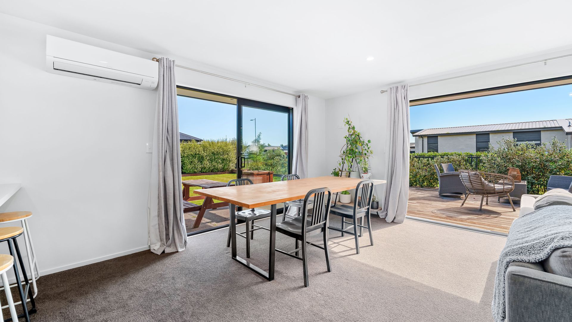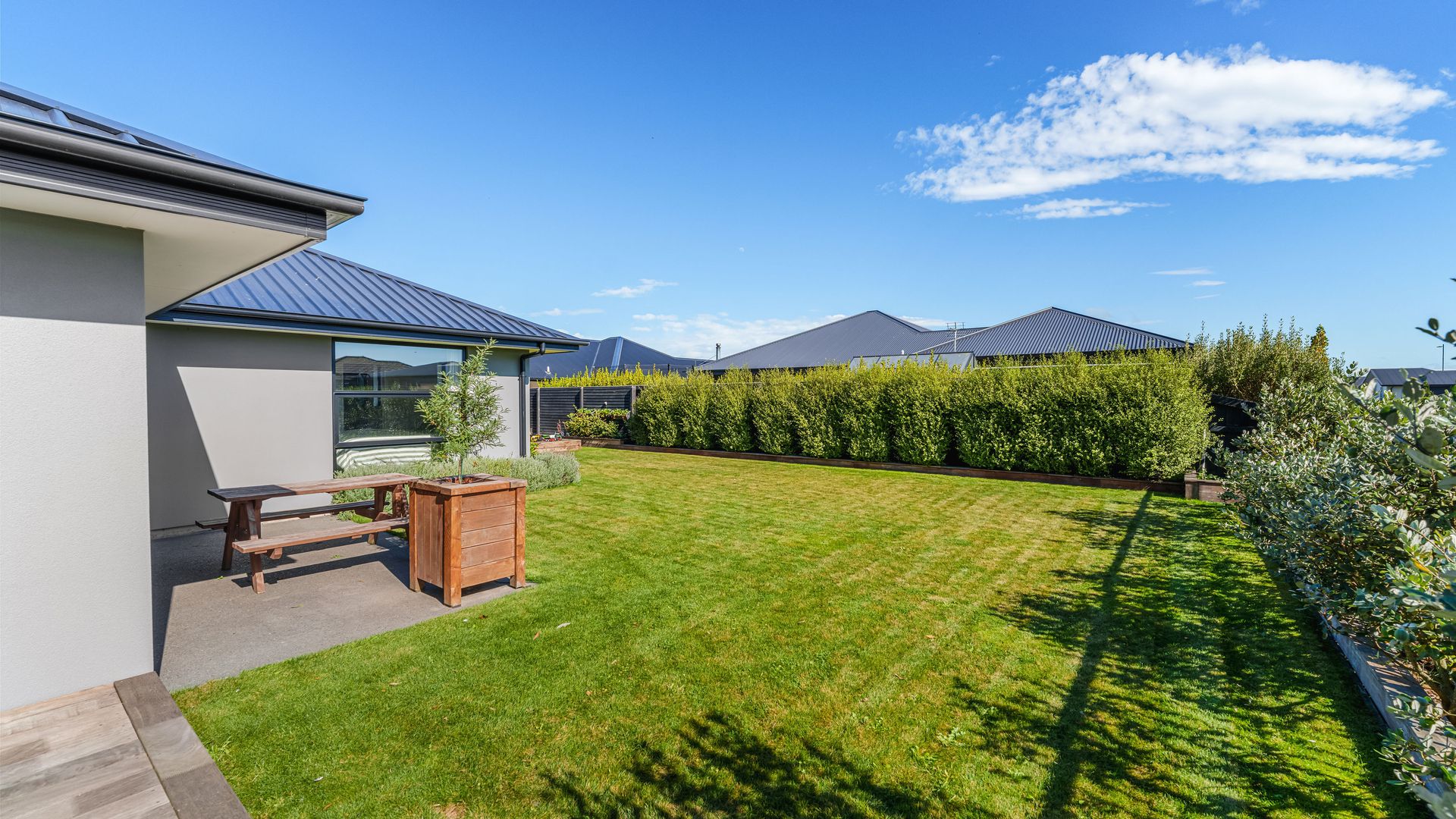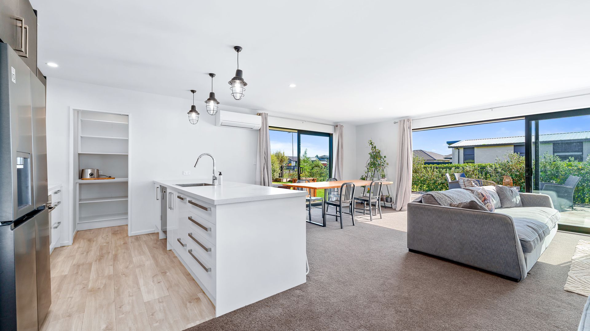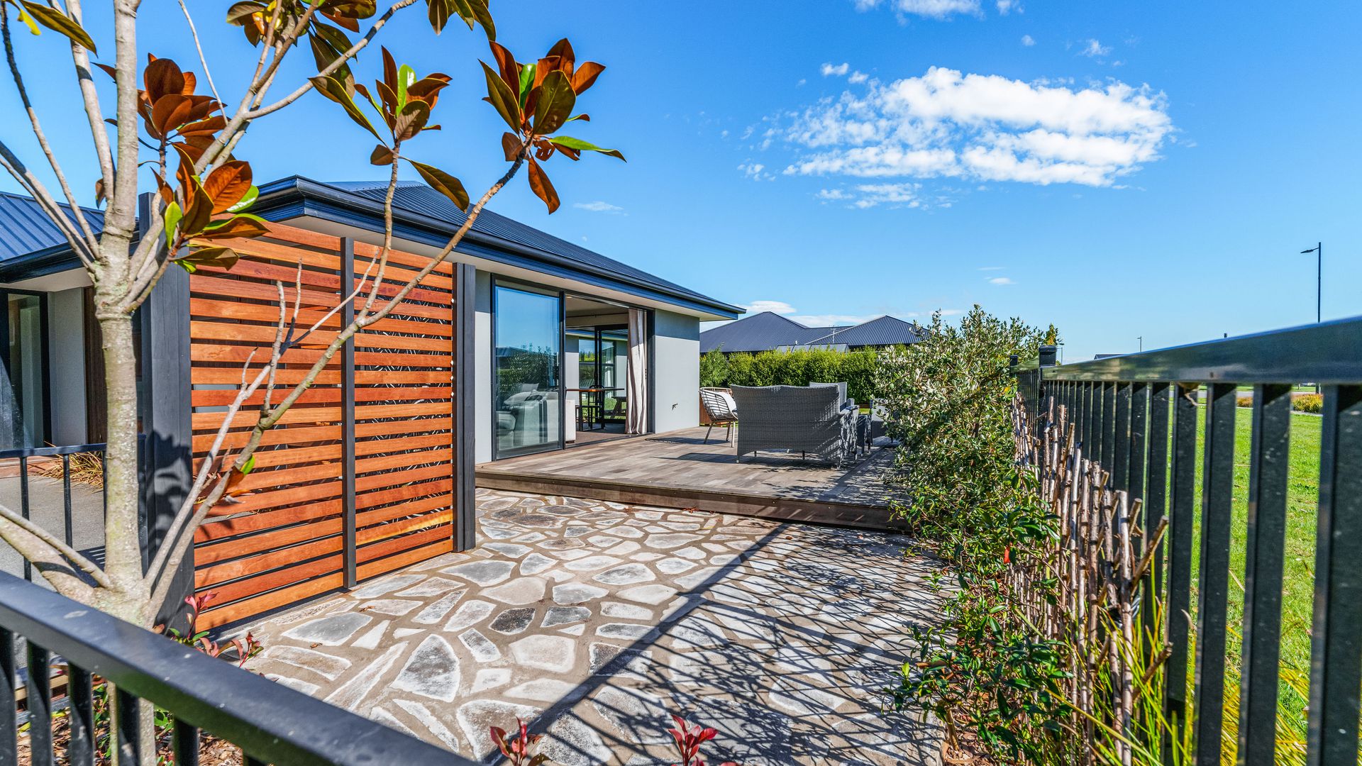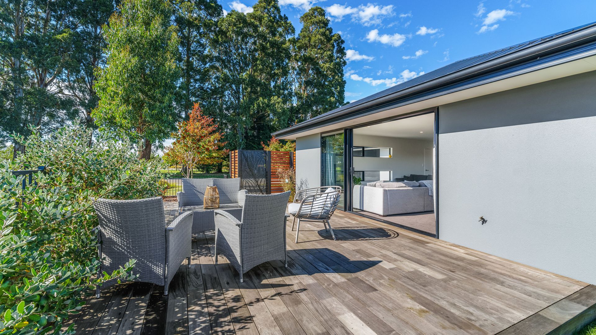 Positioned directly across from Foster Park, this modern home combines everyday comfort with a location that offers space, outlook and convenience. From the moment you arrive, the established landscaping and trees create strong street appeal, complemented by a plaster and cedar exterior that gives the home a modern feel. Inside, the home centres around an open plan kitchen, dining and living area designed for easy living. The kitchen is well-sized and supported by a generous walk-in pantry, providing excellent storage and functionality. The living space flows seamlessly out to a private decking area, where you can relax or entertain while enjoying the open outlook with no direct neighbours on one side.
