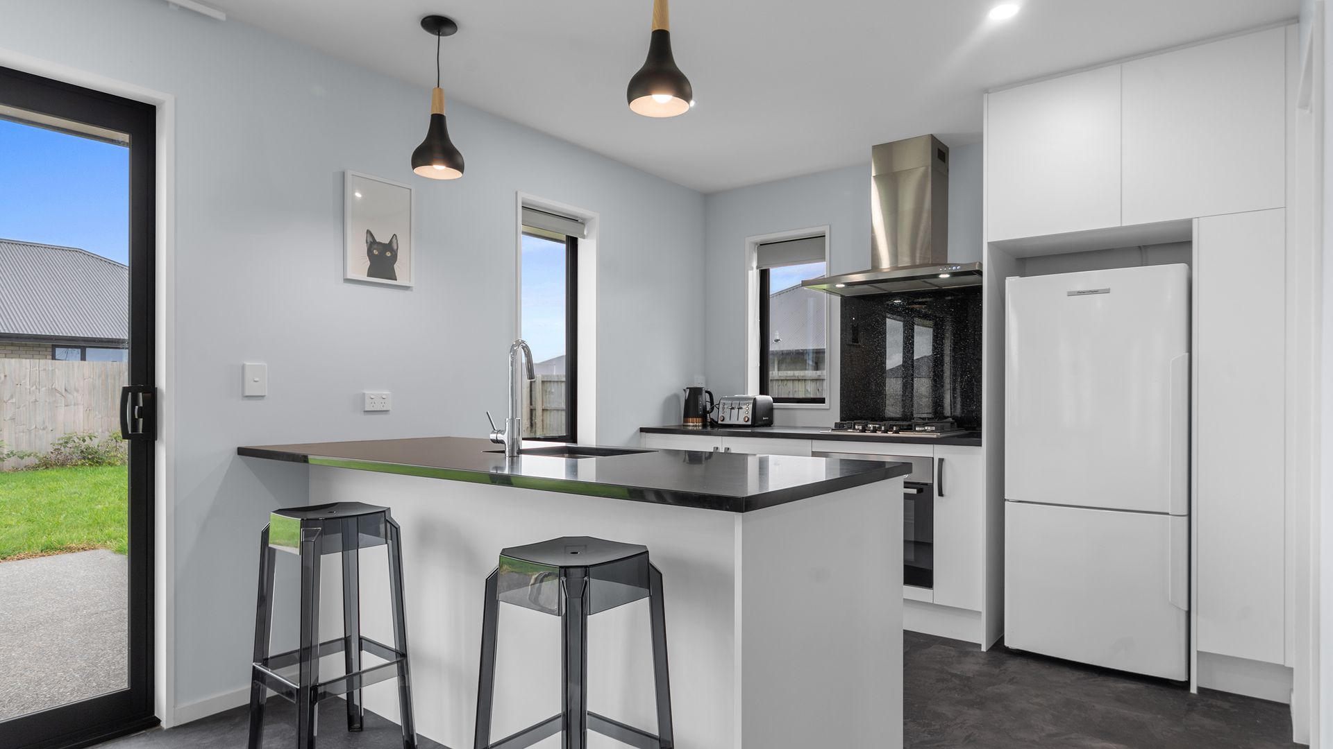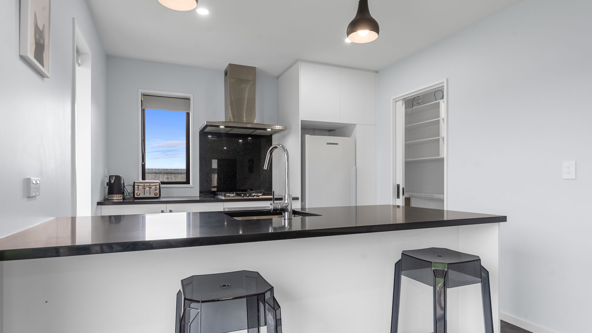 Set on a generous 727sqm section and positioned to soak up the north-facing sun, this modern home delivers space, light, and easy living in a popular Leeston location. The open-plan kitchen, dining and living area forms the heart of the home, with great natural light and easy flow out to the patio and backyard, perfect for everyday living and having friends or family over. The kitchen is well thought out with black stone benchtops, gas cooking, and a walk-in pantry, giving you both style and practicality.