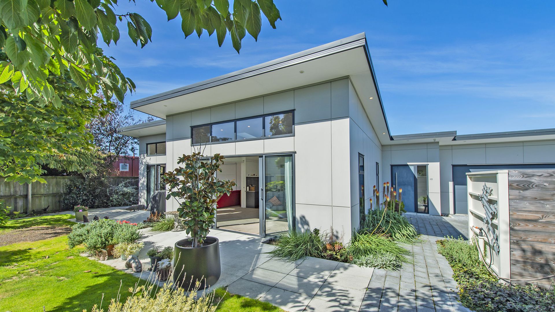 The spacious, chef-friendly kitchen overlooking the dining area is a real focal point. It is well equipped with modern fittings and appliances, along with plenty of bench and storage space. There is also a second living area off the main living space, accessed via a barn-style door; this area opens out onto the perfectly private courtyard. The bathrooms feature extensive tiling and underfloor heating and are modern in design. The ensuite off the master includes a generous double shower, while the centrally located main bathroom is perfectly positioned to serve the other two bedrooms (one of which has ensuite access to this bathroom). This naturally warm home offers several heating options for those cool Canterbury nights, including a newly installed pellet fire and a heat pump. Add to this plenty of general storage, including a large walk-in robe servicing the master bedroom, an attached genuine double garage, sun-soaked outdoor dining options, and numerous extras, all on a very easy-care landscaped section and you have the perfect retreat for a busy couple, or a lock-and-leave option for those who love to travel.